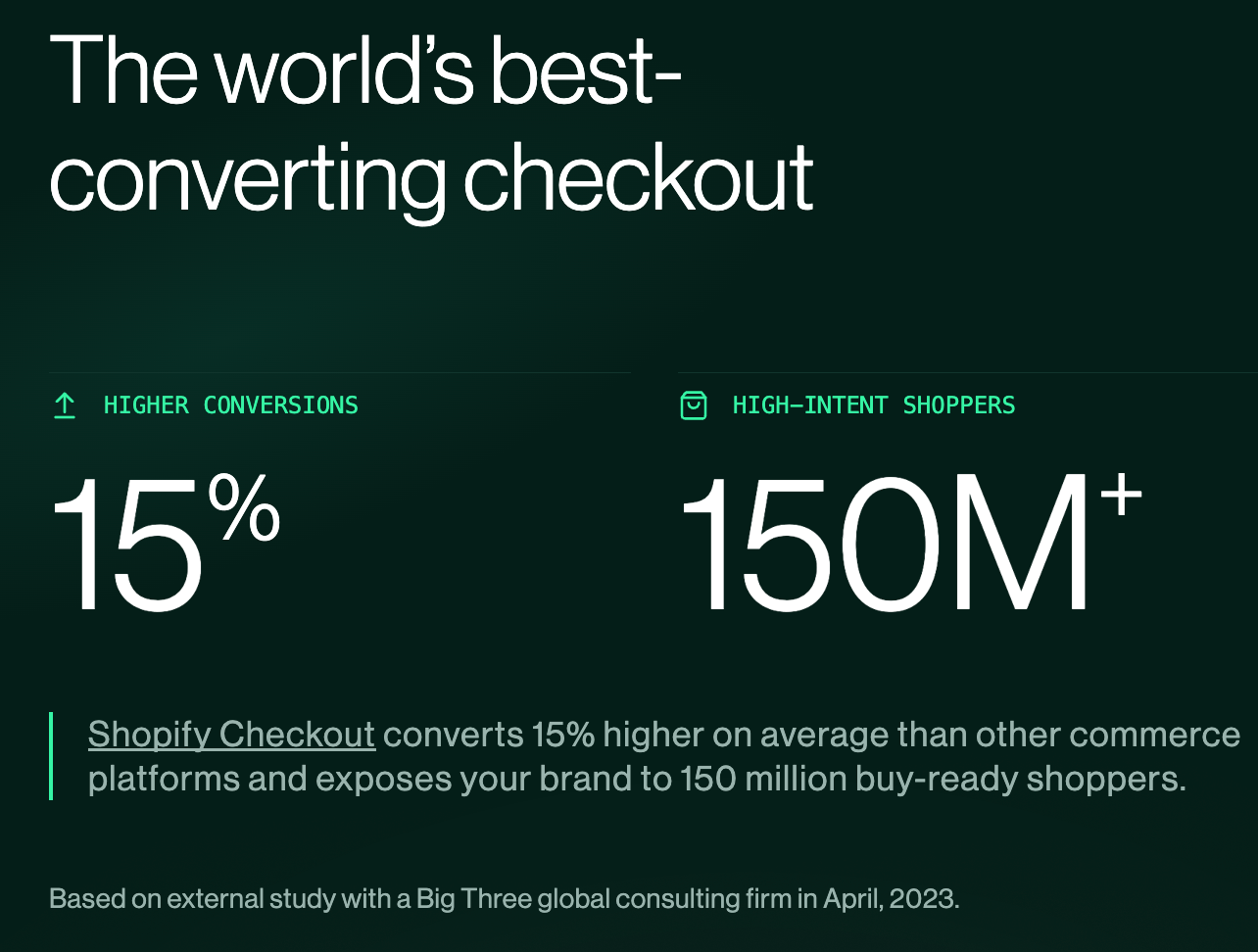 To strengthen this, Shopify commissioned an independent study by a big 3 consulting firm. Why? Because people trust what others say about you more than what you say about yourself.